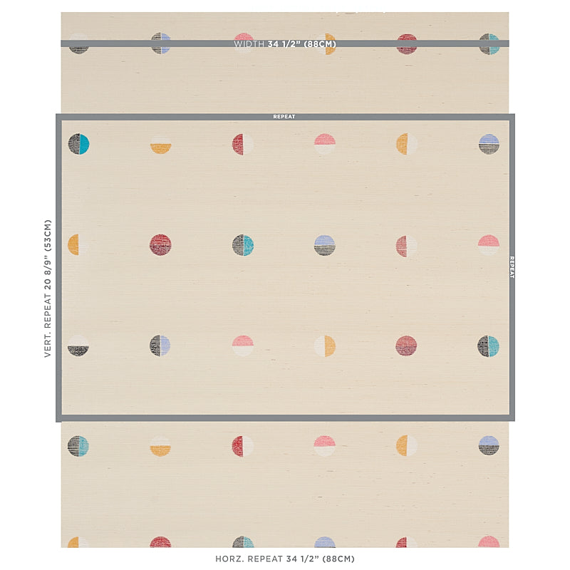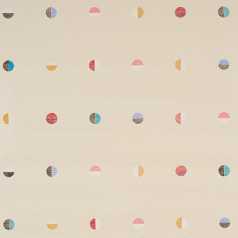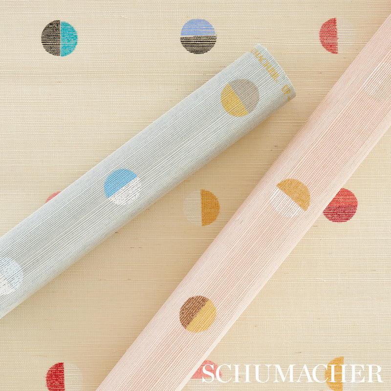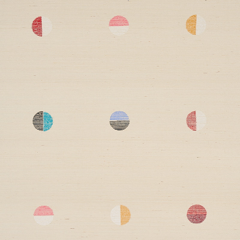 Joshua Tree Hand Printed Sisal mineral-colored wallpaper was designed by Caroline Z Hurley in her Brooklyn studio. Screen printed by hand on a textural ground, the slightly skewed moons capture the spirit of handcrafted goods.