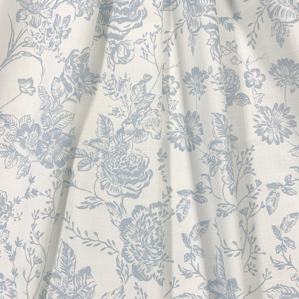 White Sky Blue Floral Cotton Upholstery Drapery Fabric